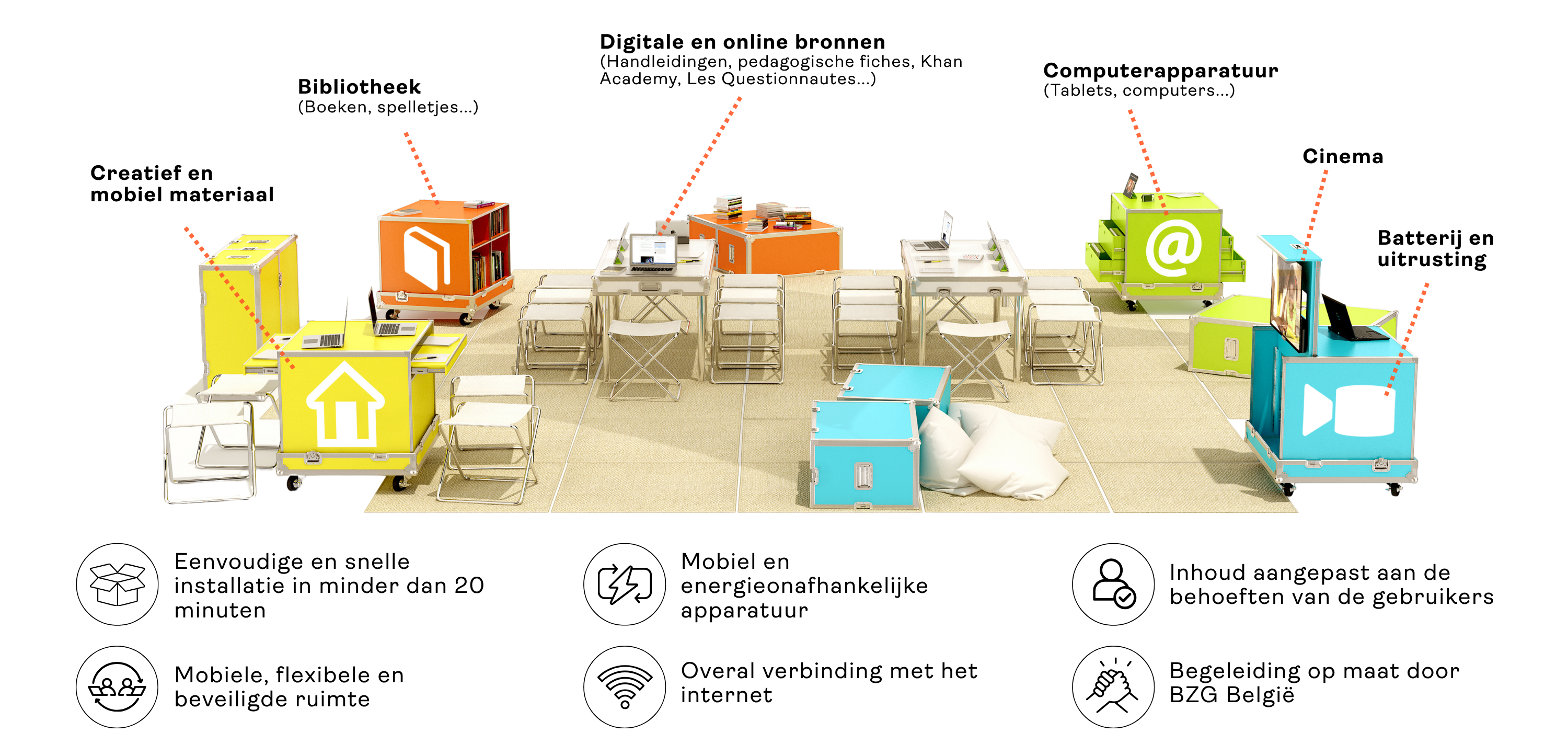 Vanuit deze vaststelling heeft het project, De Digitale Horizon van Bibliotheken Zonder Grenzen België en met de steun van het Europese Fonds voor Regionale Ontwikkeling en Brussels Hoofdstedelijk Gewest, het doel om de digitale vaardigheden van Brusselaars te versterken. Dit doen we door Ideas Boxes in de regio in te zetten. Dit zijn mobiele en aanpasbare bibliotheken die zijn uitgerust met digitale interfaces.